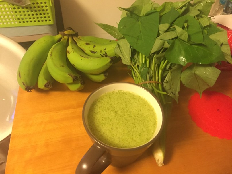 用一隻香蕉加些番薯苗,就可以打成一杯美味的果菜露